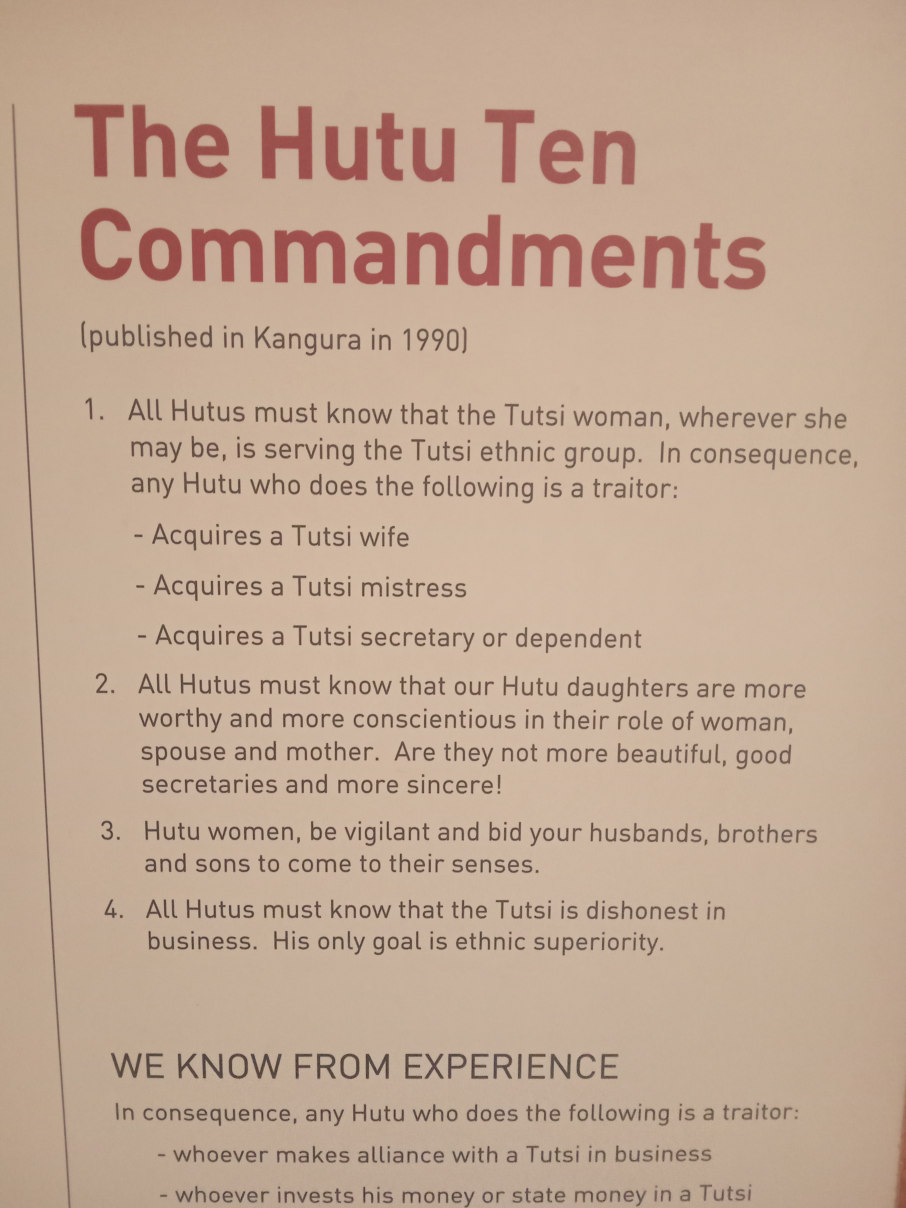 Μετά το πρόσφατο βιωματικό ταξίδι μου στην υπέροχη Ρουάντα, κατάφερα να συγκεντρωθώ και να βγάλω λίγες γραμμές. Η Ρουάντα για όσες, όσους δεν το γνωρίζουν έζησε κ επέζησε μια γενοκτονίας 100 ημερών. Σφαγιαστήκανε, με την ανοχή, υποκίνηση της Δύσης, πέθαναν και αναστήθηκαν από τις στάχτες τους. Μιλώντας με τους εγκάρδιους και ευγενικούς ντόπιους, ανακάλυψα ότι κάθε οικογένεια έχει τουλάχιστον ένα επιζώντα, μία επιζήσασα της γενοκτονίας. Τα χαρακτηριστικά τότε ήταν η απανθρωποποίηση των Τούτσι, κατσαρίδες τους έλεγαν καθώς και η προπαγάνδα για συστηματική εξόντωσή τους. Οι Χούτου πείστηκαν με το αφήγημα και τους σφαγιάζανε χτυπώντας στο κόκκαλο, αδερφός κατά αδερφού. Το παράδοξο είναι ότι δεν υπήρχαν ποτέ φυλετικές διακρίσεις στη χώρα και συμβίωναν αρμονικά.